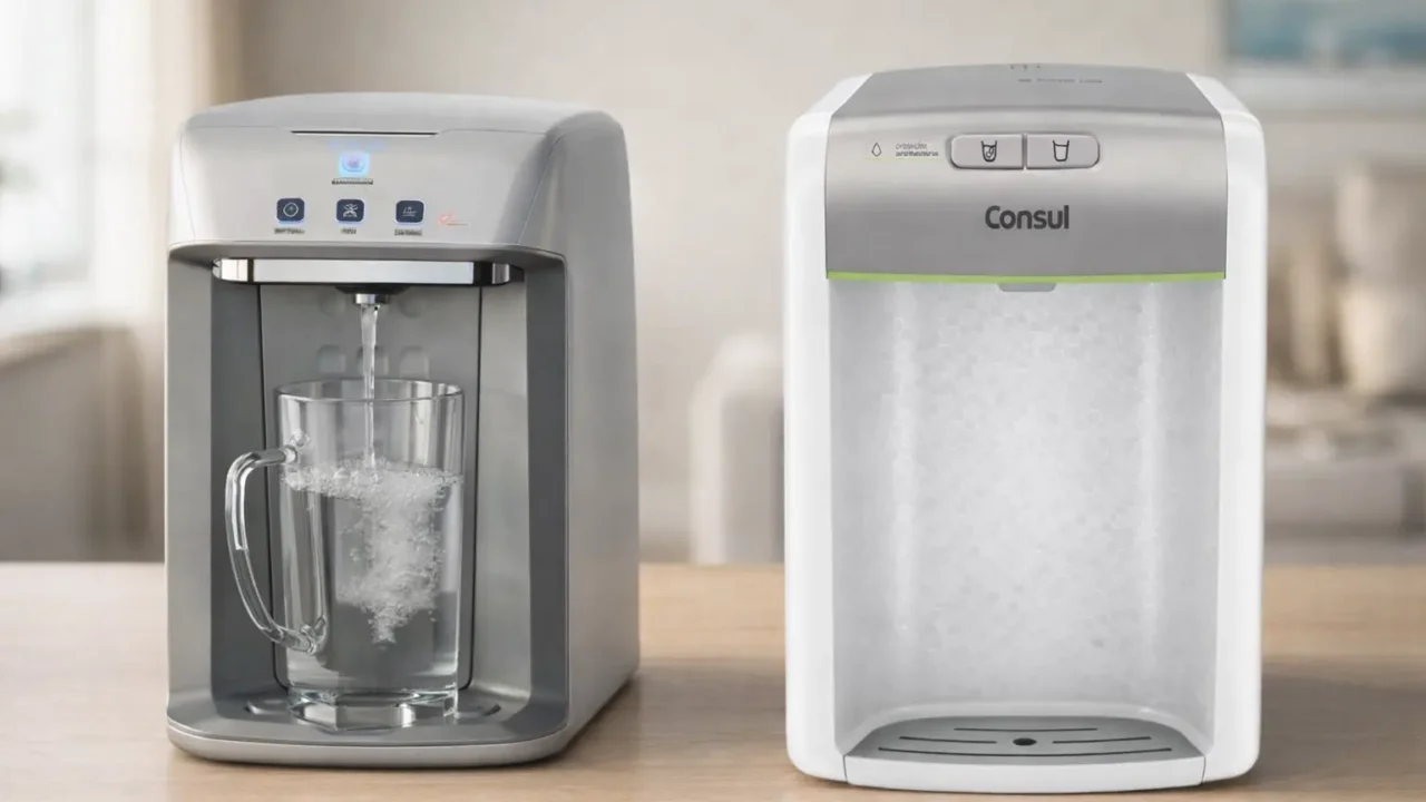 No cotidiano, isso significa escolher entre independência da energia para água natural ou foco na refrigeração eletrônica para ter água gelada sob demanda.