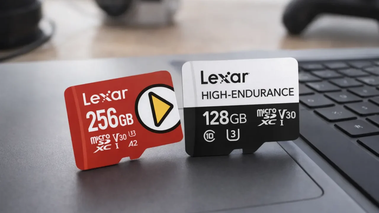 - Lexar High-Endurance 128GB olha para gravação contínua e resistência.