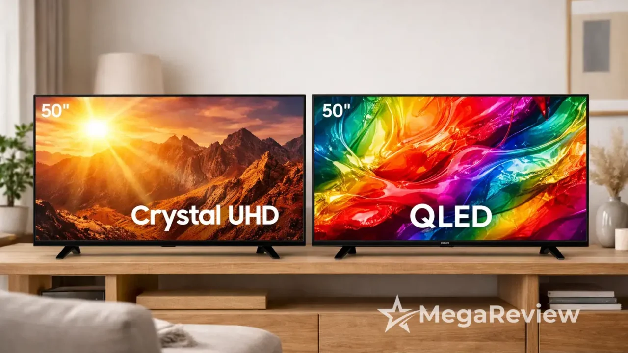 A principal diferença está na tecnologia: a QLED foca em cores vibrantes, enquanto a Crystal UHD prioriza nitidez.
