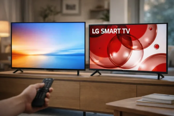 A LG, com sua tela Full HD, entrega uma experiência sólida para quem não sente necessidade da resolução 4K, mas que valoriza a integração com o assistente de voz Alexa e a compatibilidade com dispositivos Apple.