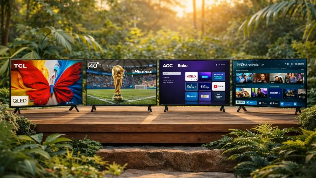 Outro ponto é o foco de uso. A TCL aparece mais completa em imagem e conectividade, enquanto a Hisense direciona a experiência para áudio e modos específicos. Já a AOC reduz a complexidade para quem quer acesso rápido a apps, e a HQ amplia as opções de conexão física.