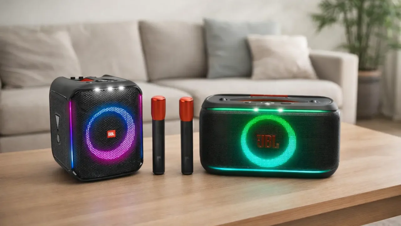 Pensando nisso, reunimos quatro modelos da linha PartyBox com foco em festas e karaokê. A ideia aqui é organizar as opções com base no que cada uma entrega — como presença de microfone, efeitos de luz, resistência a respingos e formas de conexão — para facilitar a decisão de acordo com o seu cenário.