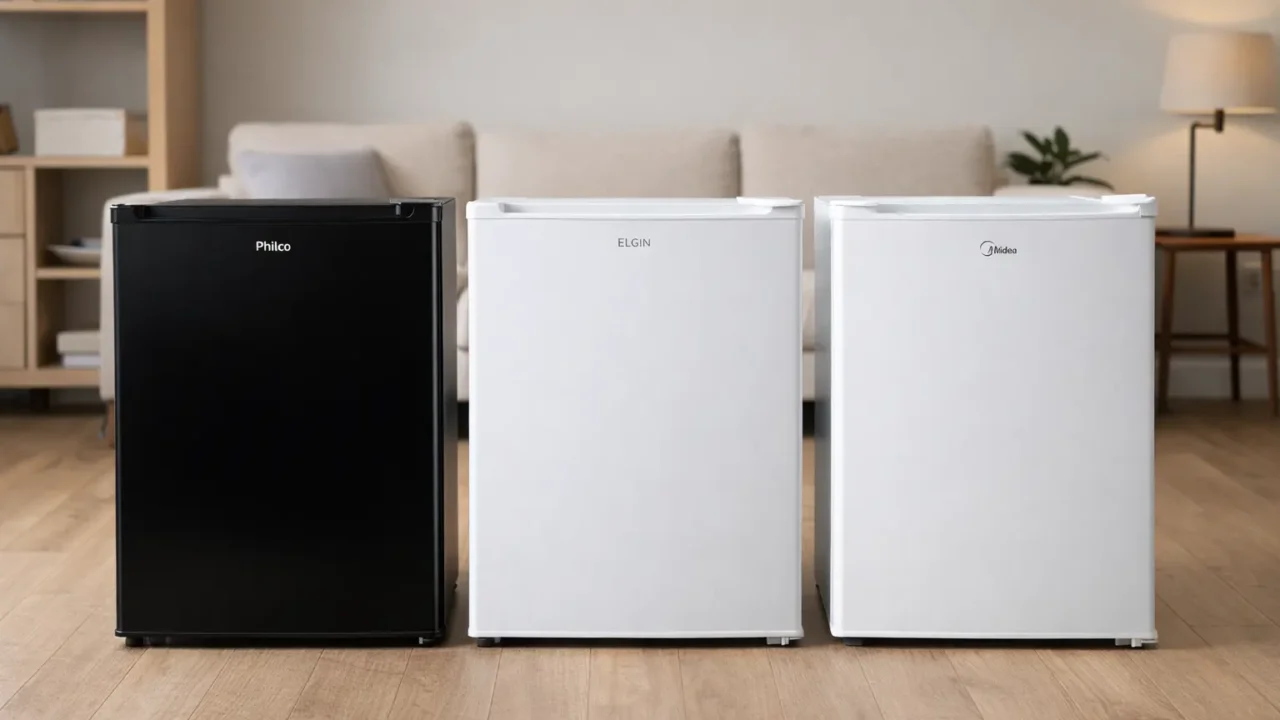 O melhor frigobar compacto é o que combina com o seu espaço e com o que você realmente vai guardar: litros, organização interna e ajustes de temperatura tendem a pesar mais do que qualquer “tamanho único”. Use a lista para bater o olho em três pontos — capacidade, porta reversível e extra frio — e você chega rápido no modelo que encaixa no seu quarto ou escritório sem dor de cabeça.