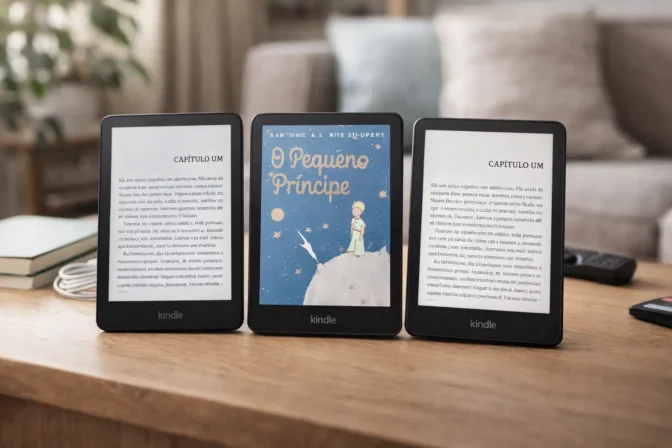 Se a sua prioridade é ler com conforto e foco, o Kindle costuma ser uma escolha natural: ele foi pensado para leitura, sem redes sociais, notificações ou apps que puxem sua atenção. Dentro da linha, porém, existem diferenças importantes — como tipo de tela, ajustes de iluminação, tempo de bateria e recursos extras que podem fazer sentido para viagens, rotina ou leitura noturna.
