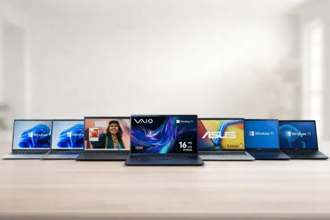 - Se você prefere tela maior com proporção diferente, tende a combinar mais com Notebook VAIO FE 16 AMD Ryzen 5-5625U Windows 11 Home 12GB 512GB SSD 16″ IPS WUXGA Antirreflexo