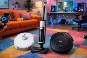 Listas Aspiradores de Pó: Funções de aspirar, varrer e passar pano, rodas emborrachadas, sensores antiqueda, 3 modos de limpeza – 8 escolhas por perfil de uso