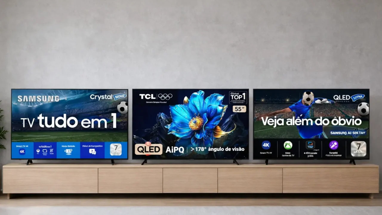 Reunimos os itens e organizamos por recorte de TVs 55″ 4K com propostas distintas de uso e recursos.