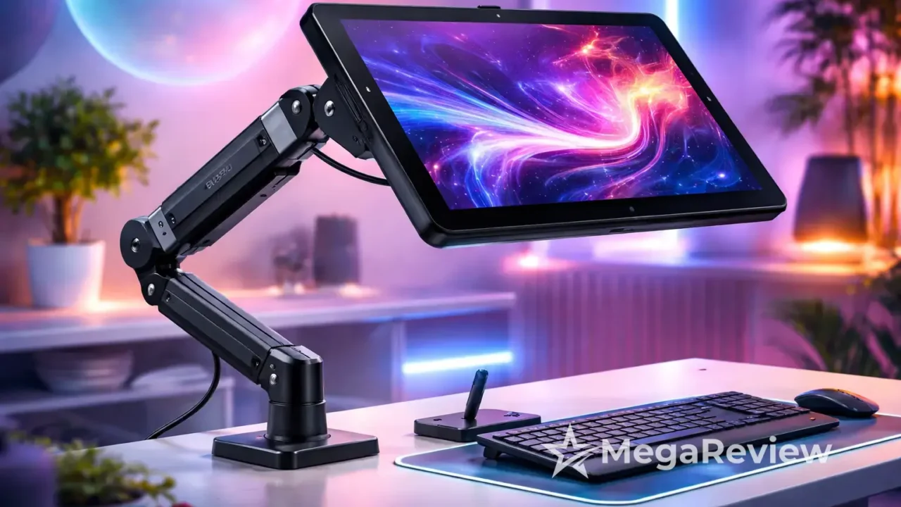Na prática, o braço flexível serve para colocar o tablet ou display na posição ideal para o seu corpo. Assim, você consegue alinhar o ângulo de visão e a área de trabalho com mais naturalidade, o que faz diferença em tarefas como ilustração, modelagem e edição de imagem.