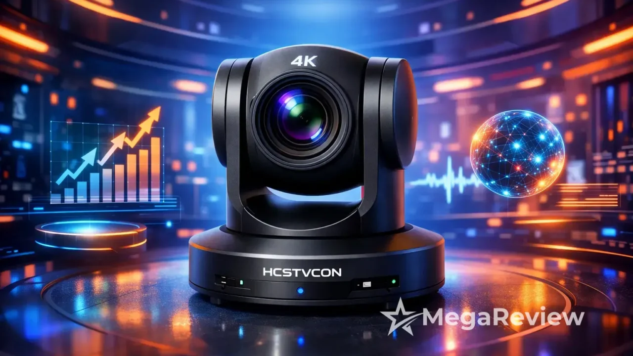 A câmera PTZ 4K da HCSTVCON custa menos de R$ 2.000 em oferta na Amazon; é uma opção para quem precisa de videoconferência mais profissional, com zoom óptico de 20x e controle de panorâmica/inclinação para enquadrar melhor reuniões, cultos e aulas.