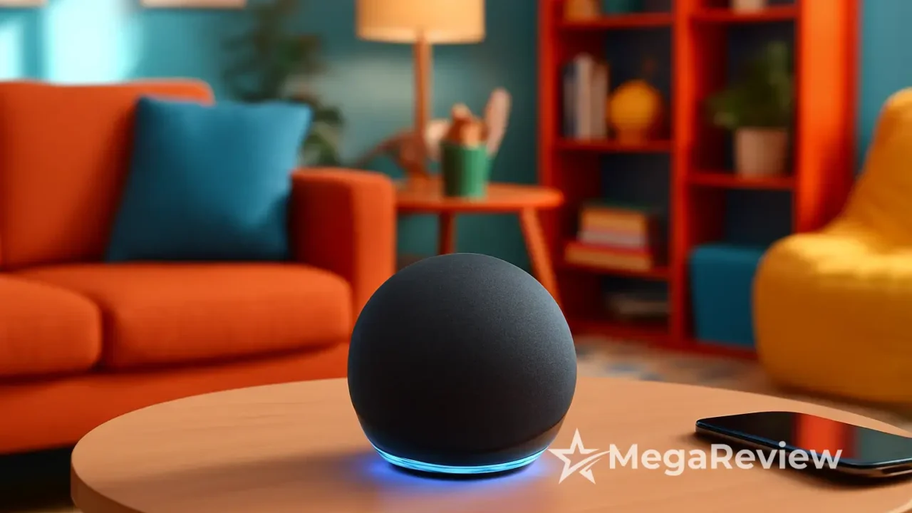 Ele toca músicas, controla dispositivos inteligentes e interage com a Alexa.