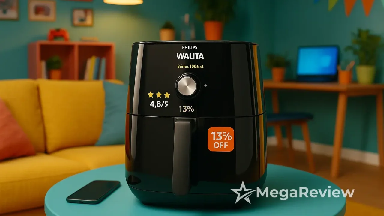A Fritadeira Airfryer Walita Série 1000 XL custa menos de R$ 330 e pode ser parcelada em até 10 vezes sem juros na Amazon; o destaque fica para a tecnologia RapidAir, que usa um desenho interno em formato de estrela para distribuir o ar quente de maneira uniforme. Isso permite fritar, grelhar ou assar com mais precisão e rapidez, mantendo textura crocante por fora e maciez por dentro. Para quem busca reduzir o uso de óleo sem abrir mão de sabor, o modelo entrega boa capacidade de 6,2 litros, operação silenciosa, economia de energia e fácil limpeza, já que as peças podem ir à lava-louças. Além disso, o timer com desligamento automático deixa o preparo mais prático no dia a dia.