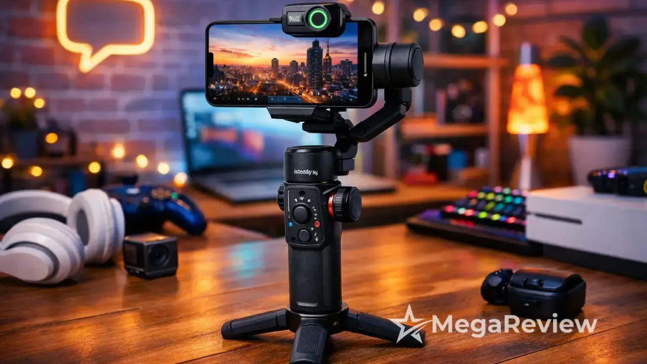 Além disso, o iSteady M6 conta com uma luz magnética CCT/RGB integrada, que oferece 360 cores ajustáveis com uma temperatura de luz variando entre 3000K e 6000K. Esse recurso proporciona uma iluminação ideal para gravações em ambientes com pouca luz, criando atmosferas personalizadas para vídeos como unboxings ou transmissões ao vivo.