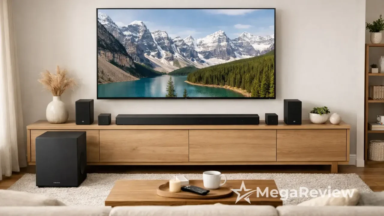 Um destaque é o Dolby Atmos sem fio, que reduz a necessidade de cabos extras e facilita a instalação em salas já montadas. Na prática, o recurso busca criar altura e posicionamento mais preciso dos efeitos, deixando passos, chuva e objetos “passando” pelo ambiente com mais naturalidade.