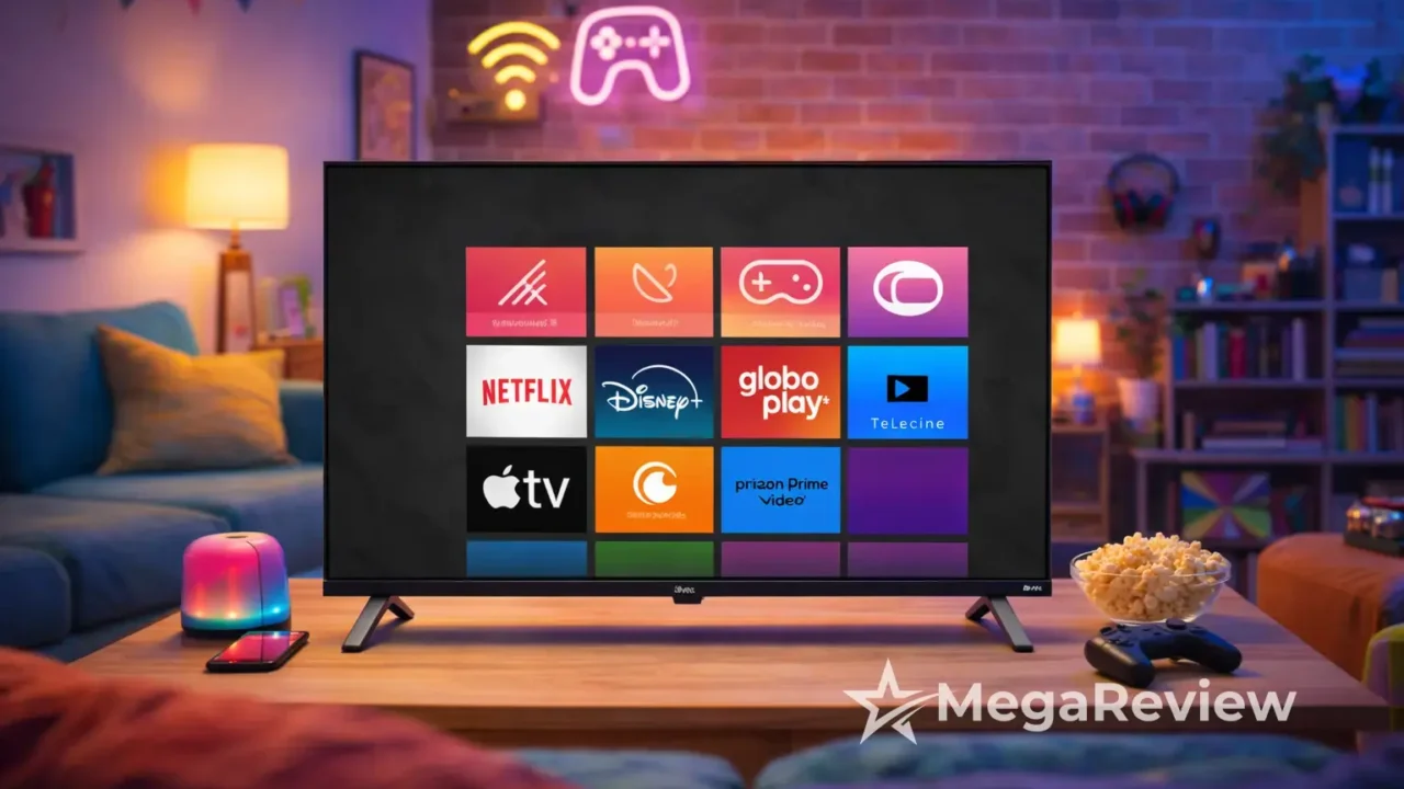 Por fim, a possibilidade de montagem na parede ou uso sobre rack amplia a versatilidade. A compatibilidade com diferentes serviços de streaming reforça o perfil de uma TV inteligente prática e funcional.
