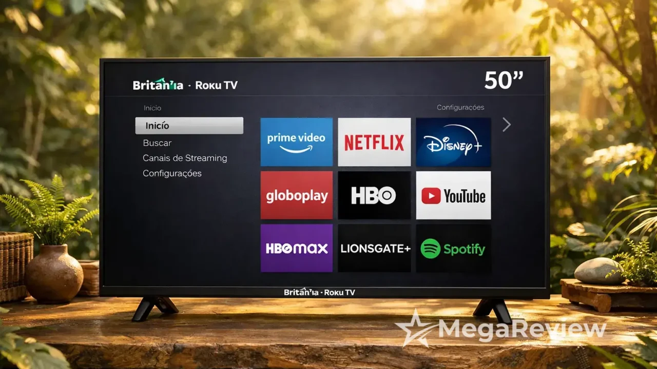 A Smart TV 50 polegadas Britânia Roku TV entra em oferta por menos de R$ 1.615,00 com parcelamento em até 10x sem juros; o grande destaque aqui é a combinação de 4K com Roku TV, que facilita encontrar apps e conteúdos no dia a dia sem complicação.