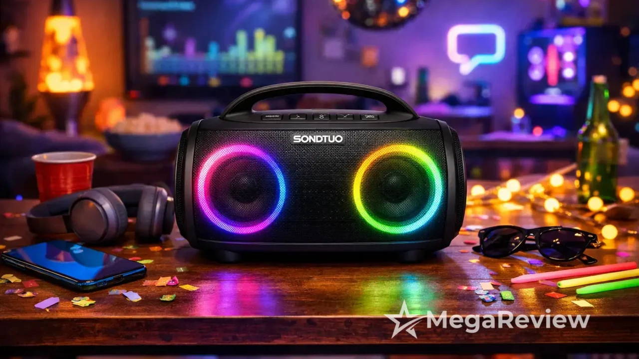 A SONDTUO PartyFree S1 custa menos de R$ 708 em oferta, com parcelamento em até 12x sem juros; o destaque é a potência de 80 W com dois microfones sem fio e luz LED 360° para animar reuniões em casa ou ao ar livre sem complicação.