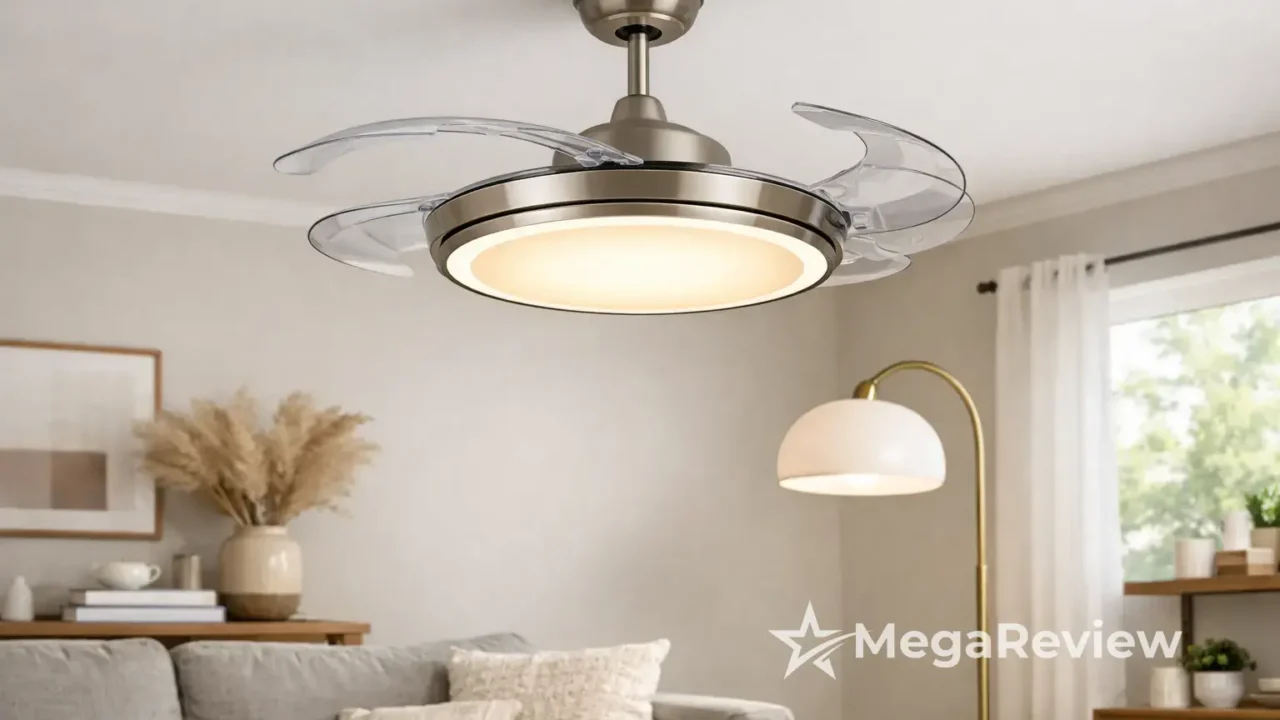 Ventilador de Teto Retrátil AHAWILL com Lâminas Retráteis e Luminária Moderna