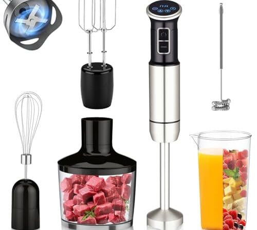 Seja o primeiro a avaliar “6 em 1 mixer de mão, 1000W, 8 velocidades, Exibição digital LCD, Vem com um copo de 860 ml, Triturador de 500 ml, Batedor de aço inoxidável com 4 pás, Adequado para sopas, smoothies e purés(127V)”