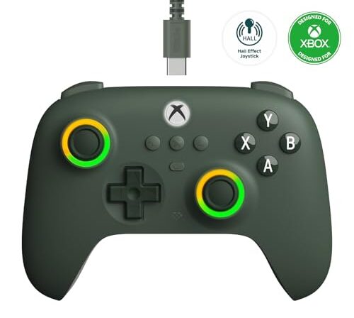 8Bitdo Ultimate C Wired Controller for Xbox with Hall Effect Joysticks and Triggers, RGB Lighting Fire Ring, Compatible with Xbox Series X|S, Xbox One, Windows 10/11- Officially Licensed (Dark Green)