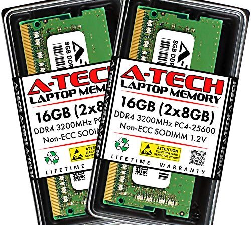 A-Tech 16 GB (2 x 8 GB) DDR4 3200 MHz SODIMM PC4-25600 Non-ECC Unbuffered CL22 1,2 V 260 pinos SO-DIMM Kit de atualização de memória RAM para laptop