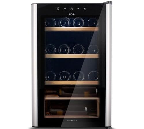 Adega Climatizada 22 Garrafas Eos Premium com Porta de Vidro e Inox Prateleira de Madeira com Compressor Eac24im 220v