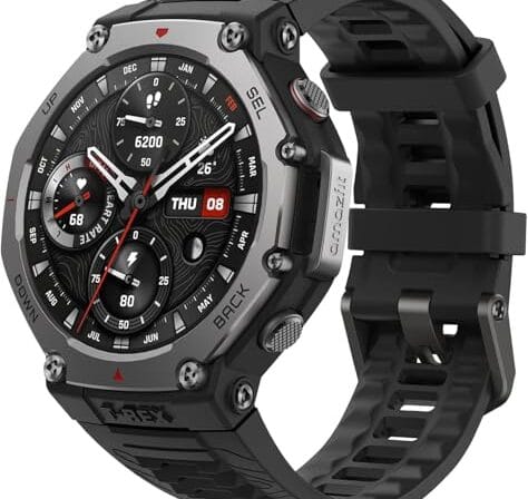 Amazfit T-Rex 3 Relógio Inteligente Robusto/Militar 48mm, GPS (com Privacidade), Mapas Offline, Longa Vida da Bateria,328 Pés Resistente à Água, 170 Modos de Fitness/Desporto (Black)