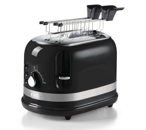 Ariete 149 Torradeira 2 fatias moderna com pinças, ejeção automática, gaveta recolhe migas, função de descongelação e aquecimento, 6 níveis de torrada, 800 W, preto