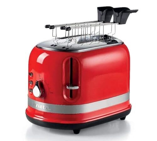 Ariete 149 Torradeira vermelha 2 fatias modernas com pinças, ejeção automática, gaveta de recolha de migalhas função descongelação e aquecimento, 6 níveis de torrada, 800 W, plástico