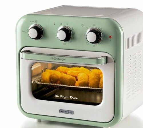 Ariete 4632, Fritadeira 2 em 1, Air Fryer e Forno Elétrico Vintage Verde, Capacidade de 16 Litros, 1400 Wats, Porta Transparente – 127V