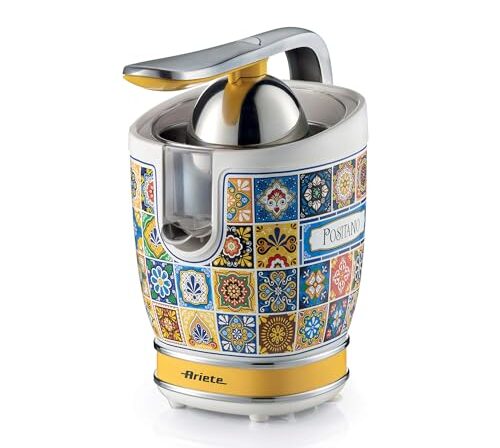 Ariete Espremedor de frutas cítricas 413 Positano, espremedor elétrico com alavanca, 2 cones para frutas grandes e pequenas, bico de gotejamento, motor silencioso, espremer profissional, corpo de