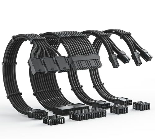 • 【O pacote inclui】1 extensão de cabo ATX de 24 pinos, 2 EPS de 4 + 4 pinos e 1 extensão de cabo PCI-e de 16 pinos (12 + 4). Cada cabo vem com 4 pentes.