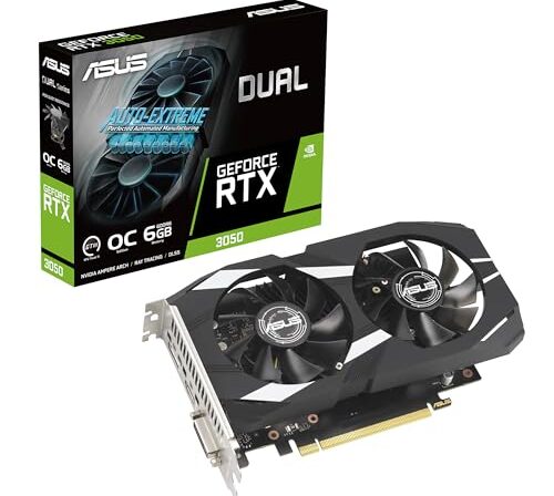 ASUS Placa gráfica dupla NVIDIA GeForce RTX 3050 6GB OC Edition Gaming – PCIe 4.0, 6GB de memória GDDR6, HDMI 2.1, DisplayPort 1.4a, design de 2 compartimentos, design de ventilador Axial-Tech,