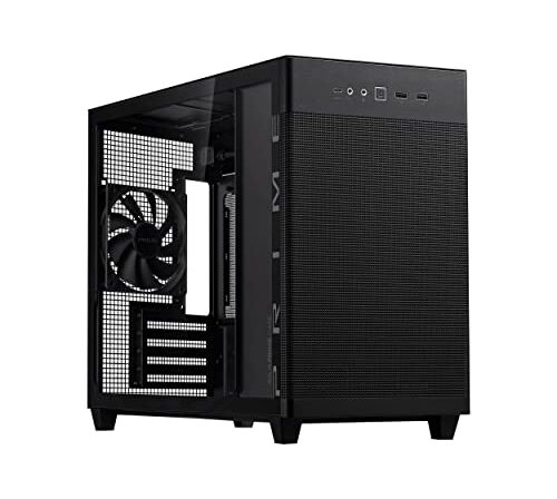 Asus Prime AP201 Black MicroATX edição de vidro temperado suporta placas gráficas de até 338 mm, coolers de 360 mm e PSU ATX padrão, painéis laterais sem ferramentas, painel frontal e lateral de vidro