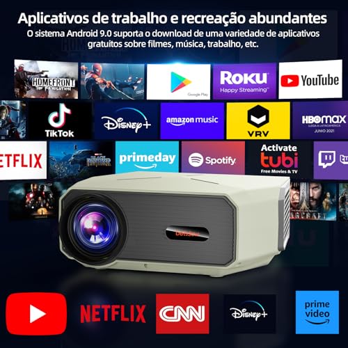 Bettdow Projetor 4k 12000 Lumens Full Hd 1080p Compatível Com Android 9, Smart Projetores Retroprojetor Portatil 350 ANSI WiFi 2.4G+5G BT 5.0, Eletronico Correção Trapezoidal, Foco Eletronico