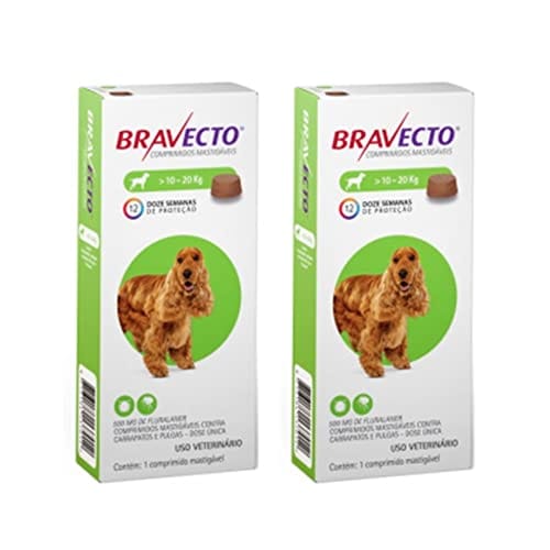 Bravecto Anti Pulgas e Carrapatos – Comprimido mastigável 500 mg – Para cães com 10-20kg – Pack com 2 Unidades
