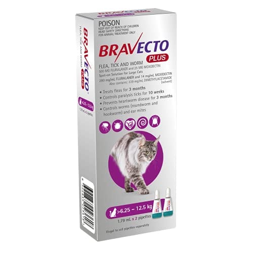 BRAVECTO CAT PLUS 500 mg 6,25-12,5 kg roxo (2 unidades)
