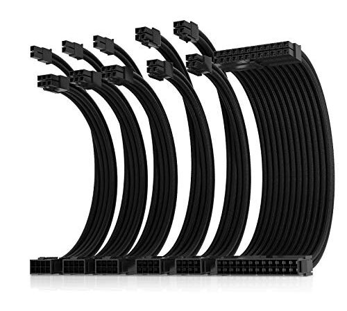Cabo com manga de fonte de alimentação Asiahorse para cabo de extensão de fonte de alimentação Kit de fios 1×24-PIN / 2×8-PIN (4 + 4) M/B, 3×8-PIN (6 + 2) PCI-E (black)