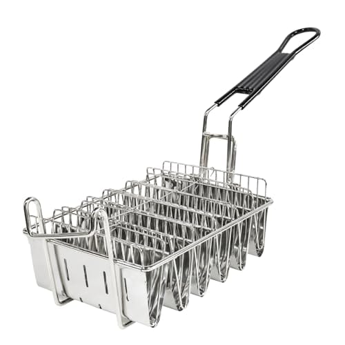 Cesta multiuso: ideal para fritar, servir e escorrer conchas de taco, batatas fritas, asas de frango e outros lanches ou aperitivos crocantes. • Construção durável: Feito de fio de aço inoxidável resistente com um revestimento reforçado para evitar ferrugem e corrosão. • Design conveniente: Possui duas alças laterai…