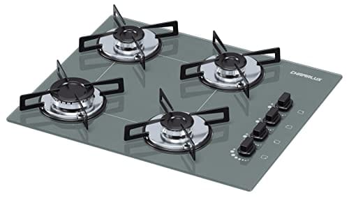 Cooktop 4 bocas Chamalux ultra chama Bivolt Trempe de Chapa Cinza