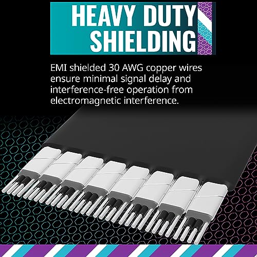 • Blindagem resistente: os fios de cobre blindados EMI de 30 AWG garantem atraso mínimo de sinal e operação sem interferência devido a interferência eletromagnética.