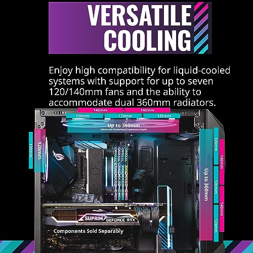 • Opções de resfriamento versáteis: suporte para até sete ventiladores de 120 mm e suporte de radiador frontal e superior de 360 mm garantem que o desempenho não seja comprometido.