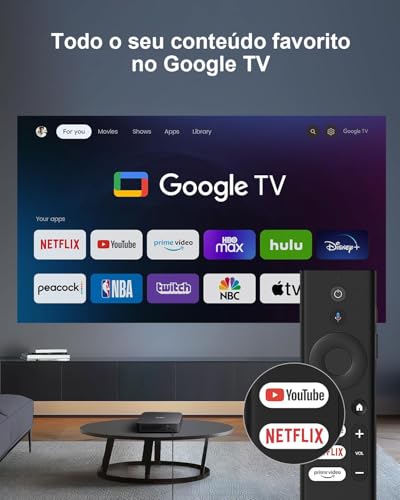 Netflix Integrado: Acesse mais de 10.000 apps do Google Play e aproveite uma vasta biblioteca de mais de 700.000 filmes e programas de serviços de streaming como Netflix, YouTube, Prime Video, Hulu, Disney+ e mais. [Nota: Alguns apps e/ou conteúdos podem não estar disponíveis em todos os países.] • Brilho Alimentado…