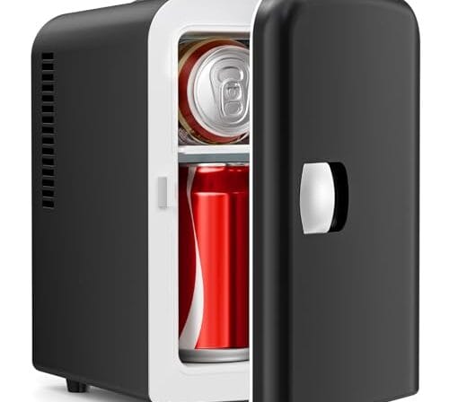 Electactic Geladeira compacta, mini geladeira portátil, capacidade de 4 L, 6 latas, para quarto, carro, escritório e dormitório, geladeira pequena para cosméticos, bebidas e alimentos, preta