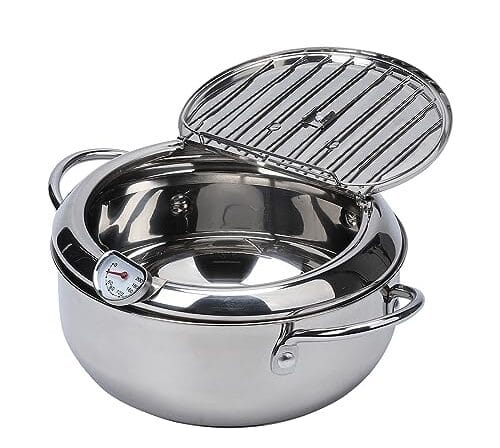 Seja o primeiro a avaliar “Elvaesther Frigideira Tempura Frigideira 304 Aço Inoxidável Fundo Plano Fogão Estilo Japonês com Tampa e Termômetro de Controle de Temperatura 304 # 20 cm fritadeira”