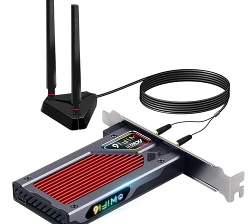 A placa adaptadora fenvi Wi-Fi 6E AX210 suporta 802.11ax através de antenas 2×2 MU-MIMO sobre as bandas de 2,4 GHz, 5 GHz e 6 GHz para placas-mãe de PC nos formatos PCI-E/x1/x4/x8/x16, também suporta BT5.2. Também Windows 10,64 bits e Google Chrome OS. S, também para ativado em kernel Linux 5.1. (se você tiver algum…