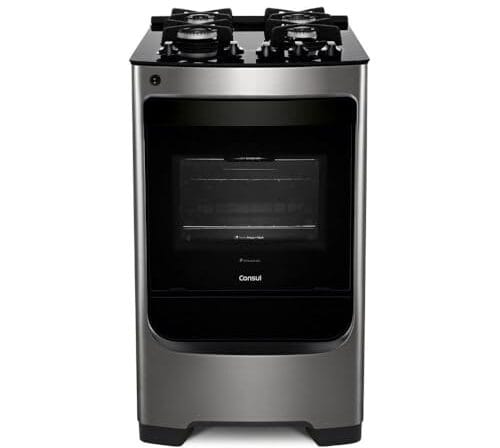 Fogão Consul 4 bocas cor Inox com mesa de vidro e grade de ferro fundido – CFO4VAR BIVOLT