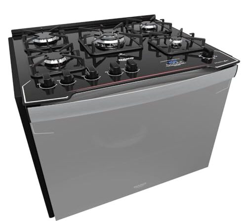 Design Moderno: Fogão de embutir com frente espelhada e acabamento em vidro temperado preto, combinando elegância e sofisticação. • Forno Grande e Versátil: Capacidade de 119,5 litros, função grill para dourar alimentos e timer digital touch para precisão no preparo. • Queimadores Poderosos: 1 queimador auxiliar de …