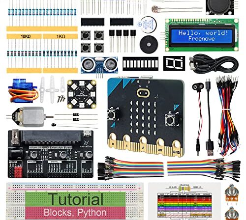 Freenove Super Starter Kit para BBC Micro:bit (V2 incluído), tutorial detalhado de 266 páginas, 192 itens, 38 projetos, blocos e código Python