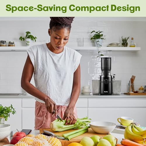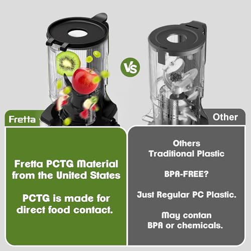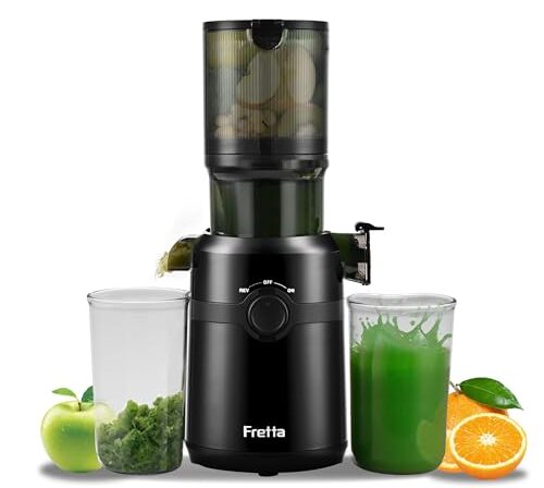 Fretta Máquinas De Suco Nifty Cold Press, Mastigação Lenta Com Grande Rampa Alimentação 1,1 L, Cabem Frutas E Vegetais Inteiros, Fácil Limpeza, Autoalimentação, Alto Rendimento Suco, Sem Bpa (Tinta