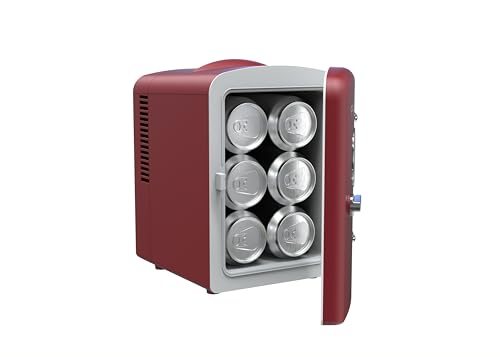 Frigidaire EFMIS171-RED Retro Mini Portable Personal Fridge-Ideal for Home, Office or Dorm-Features Active Cooling Can Holder on Top-Includes Carrying Handle, AC/DC Wall/Car Charger-Red